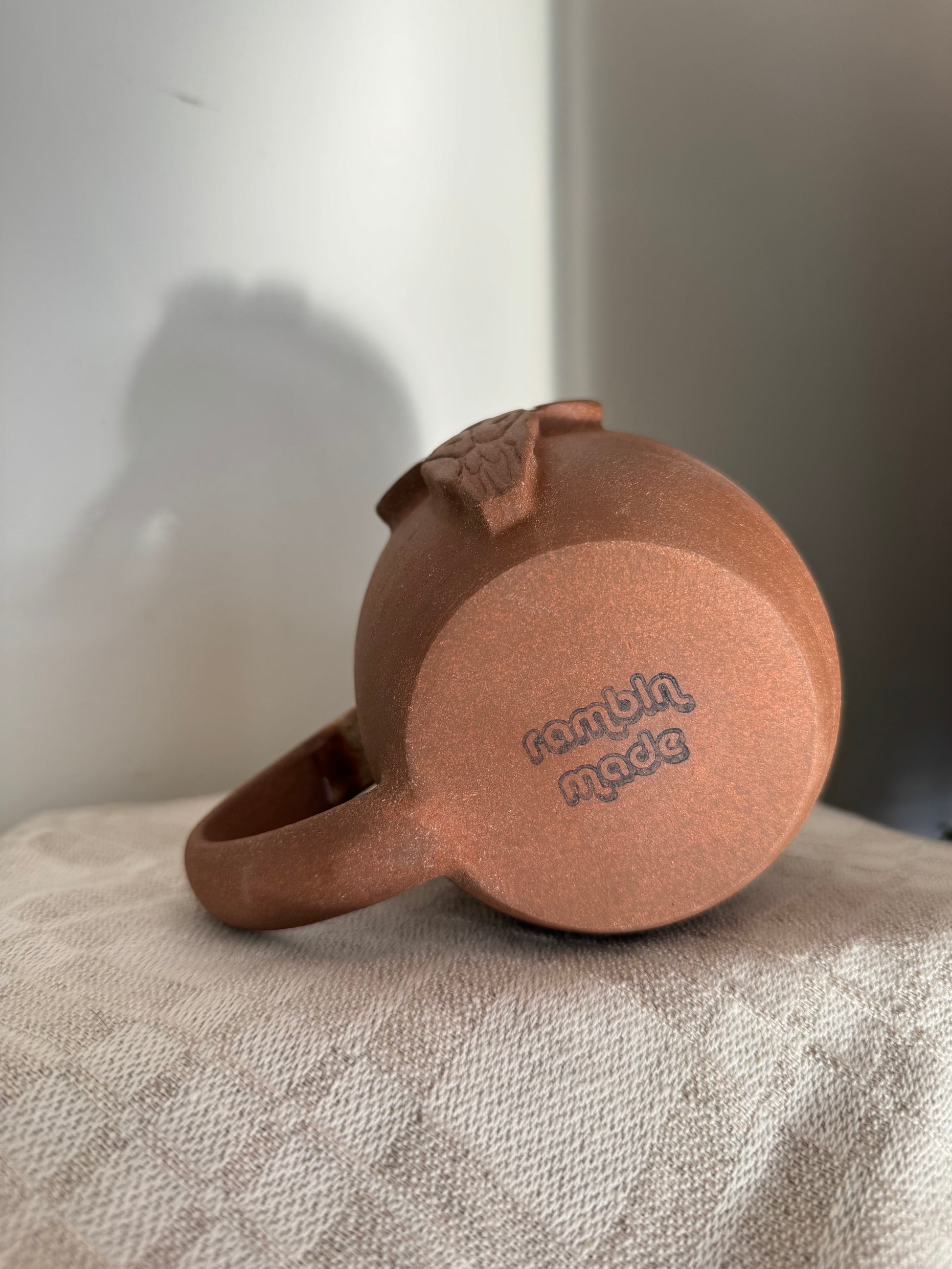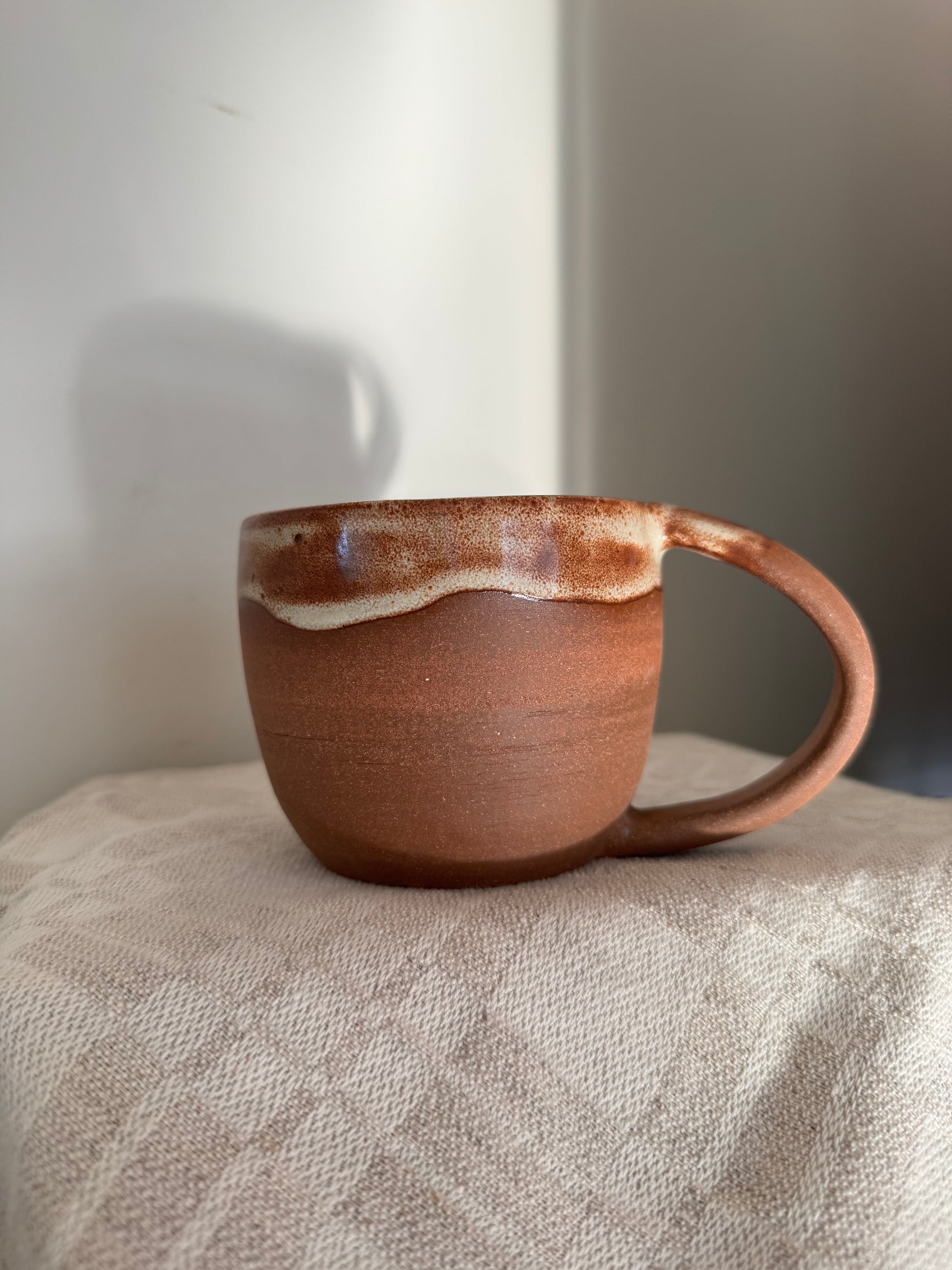 Dark brown stoneware mug with creamy rust coloured glaze.