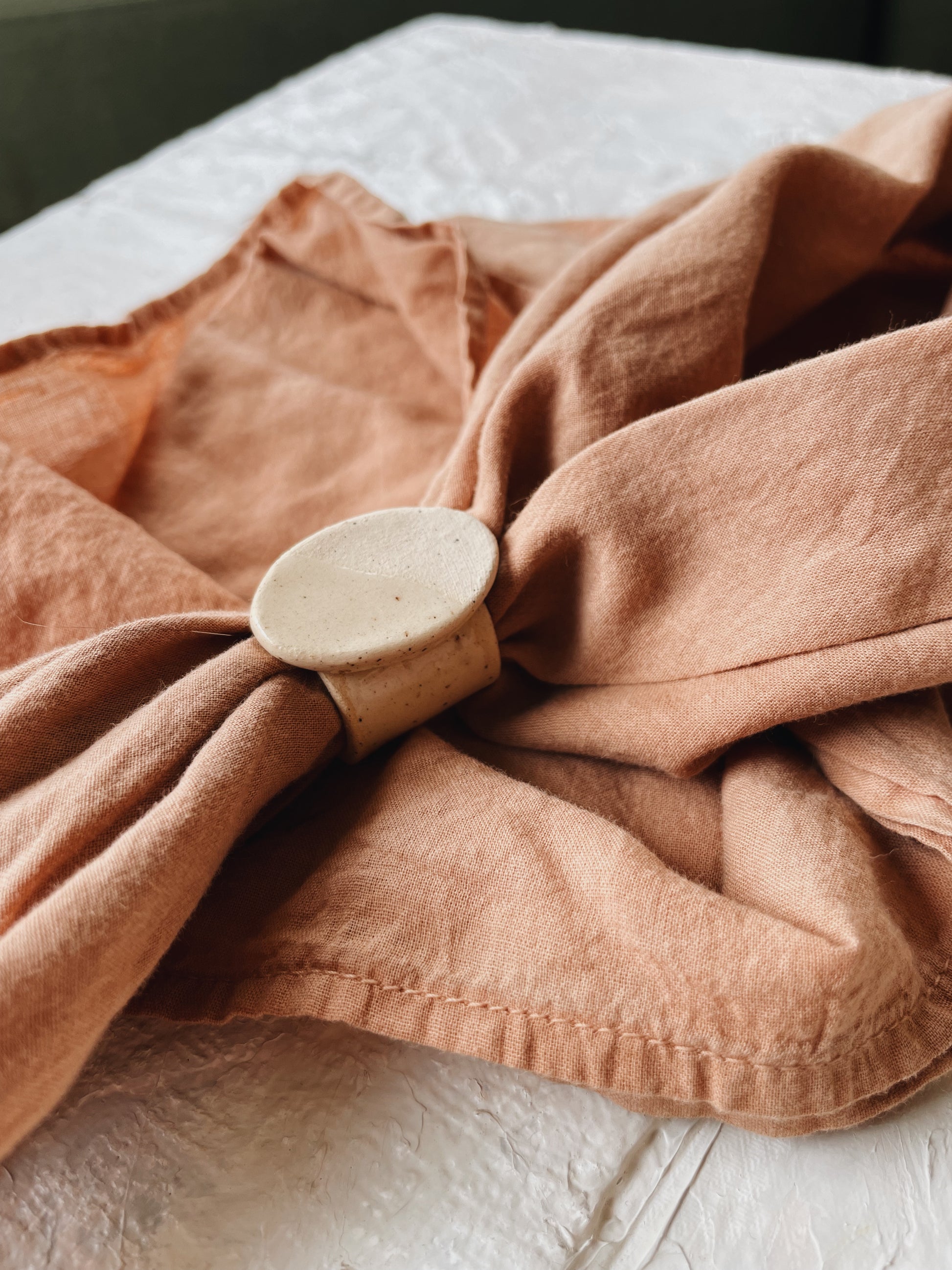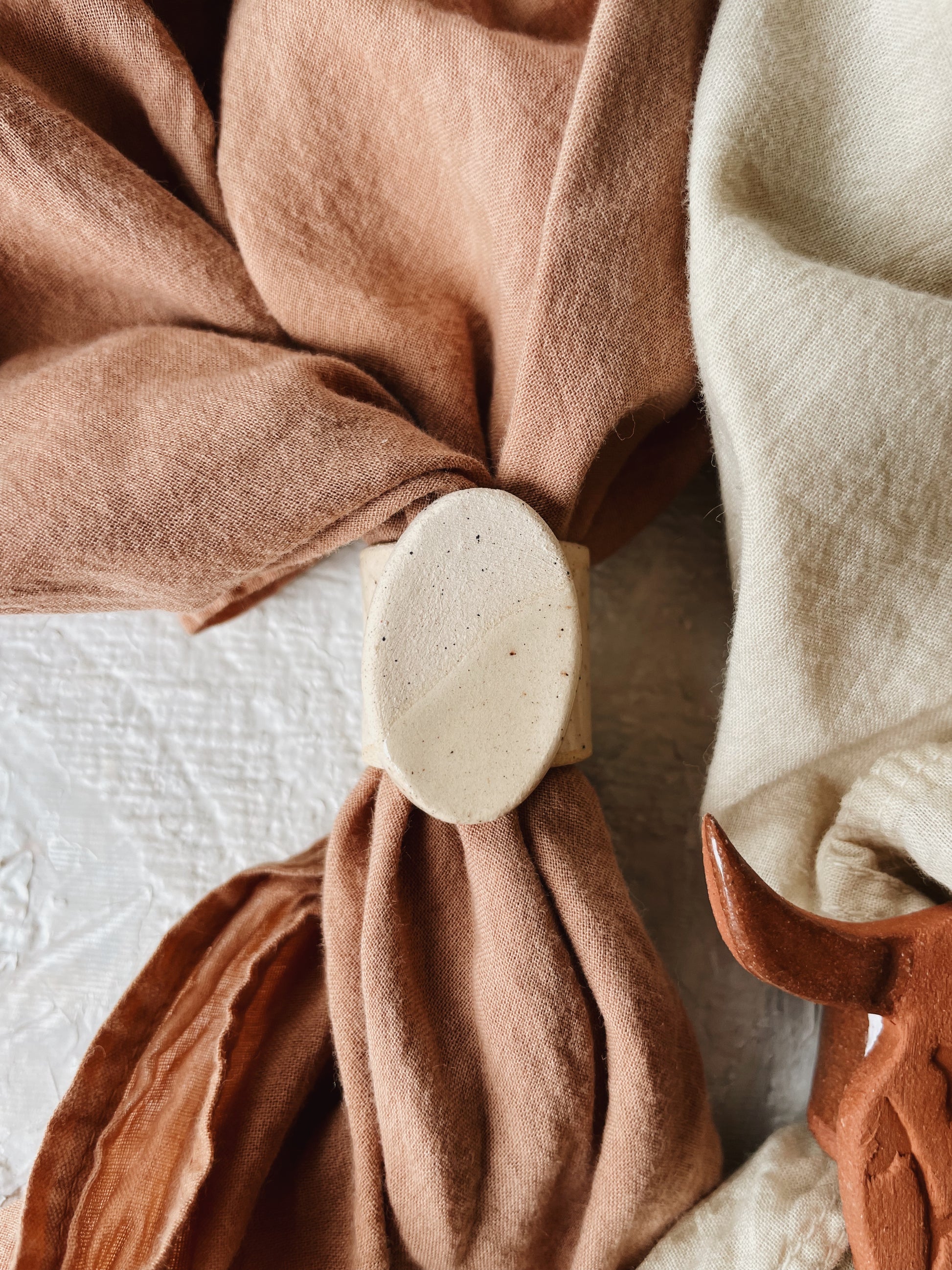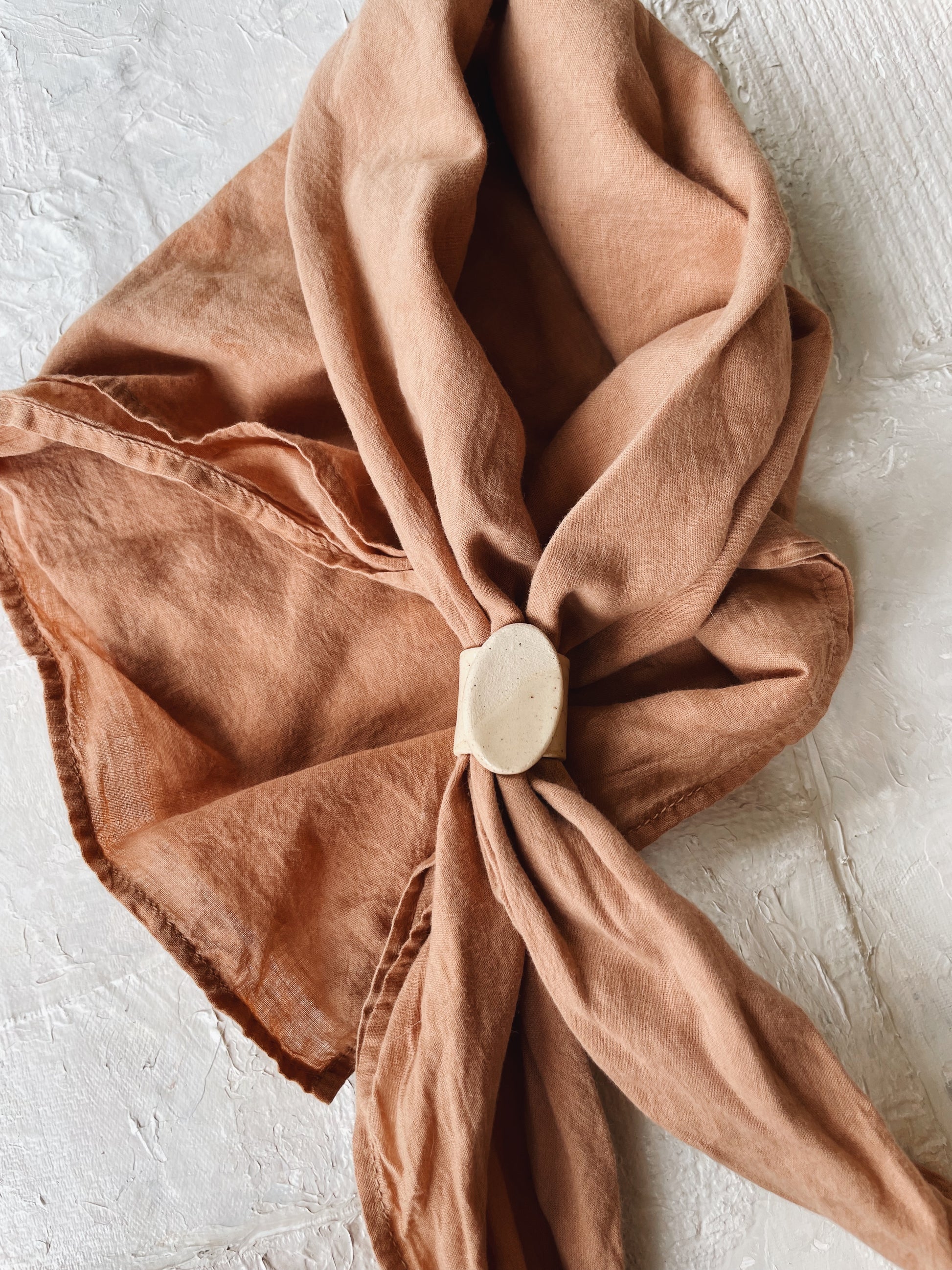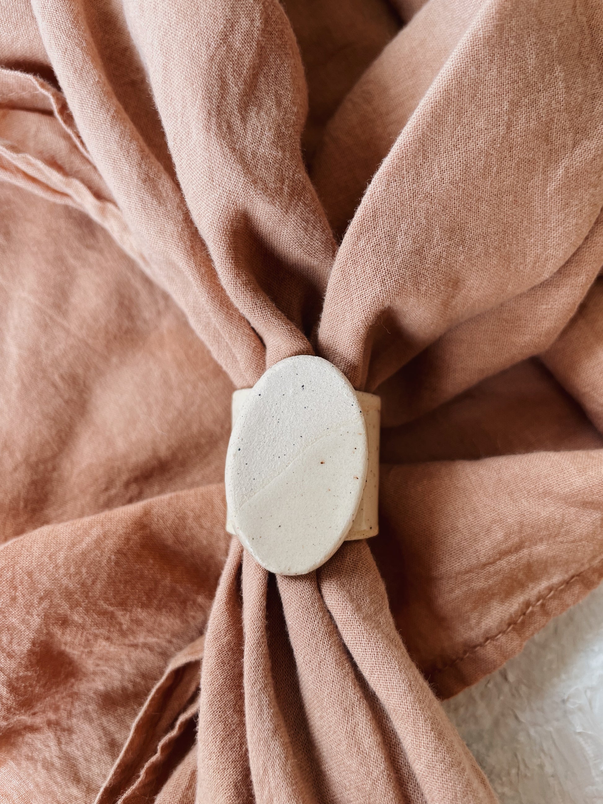 A ceramic loop, with a half glazed oval detail, for holding together your bandanas, neck ties and thin scarves.