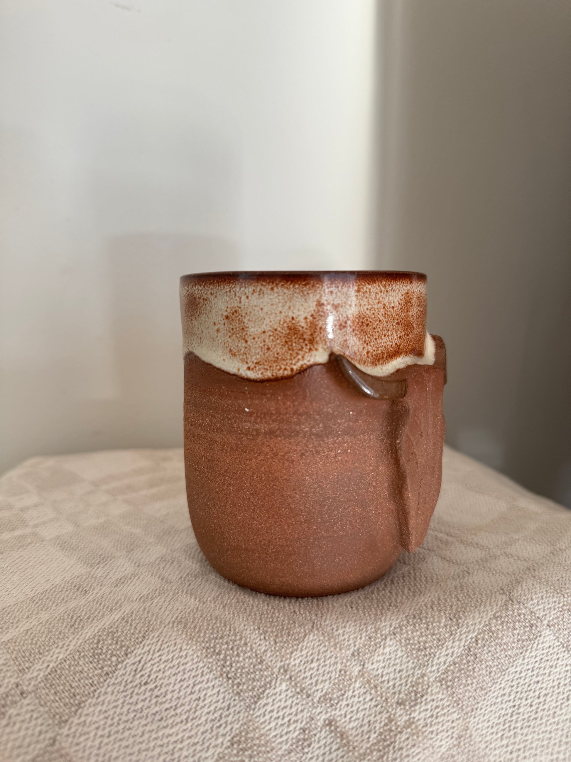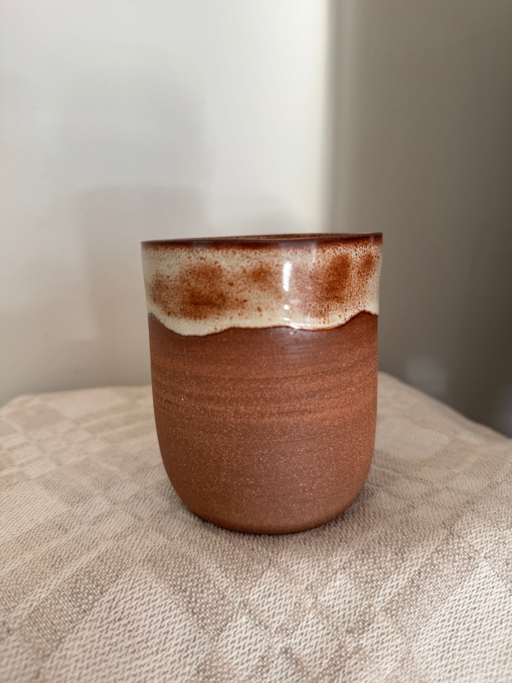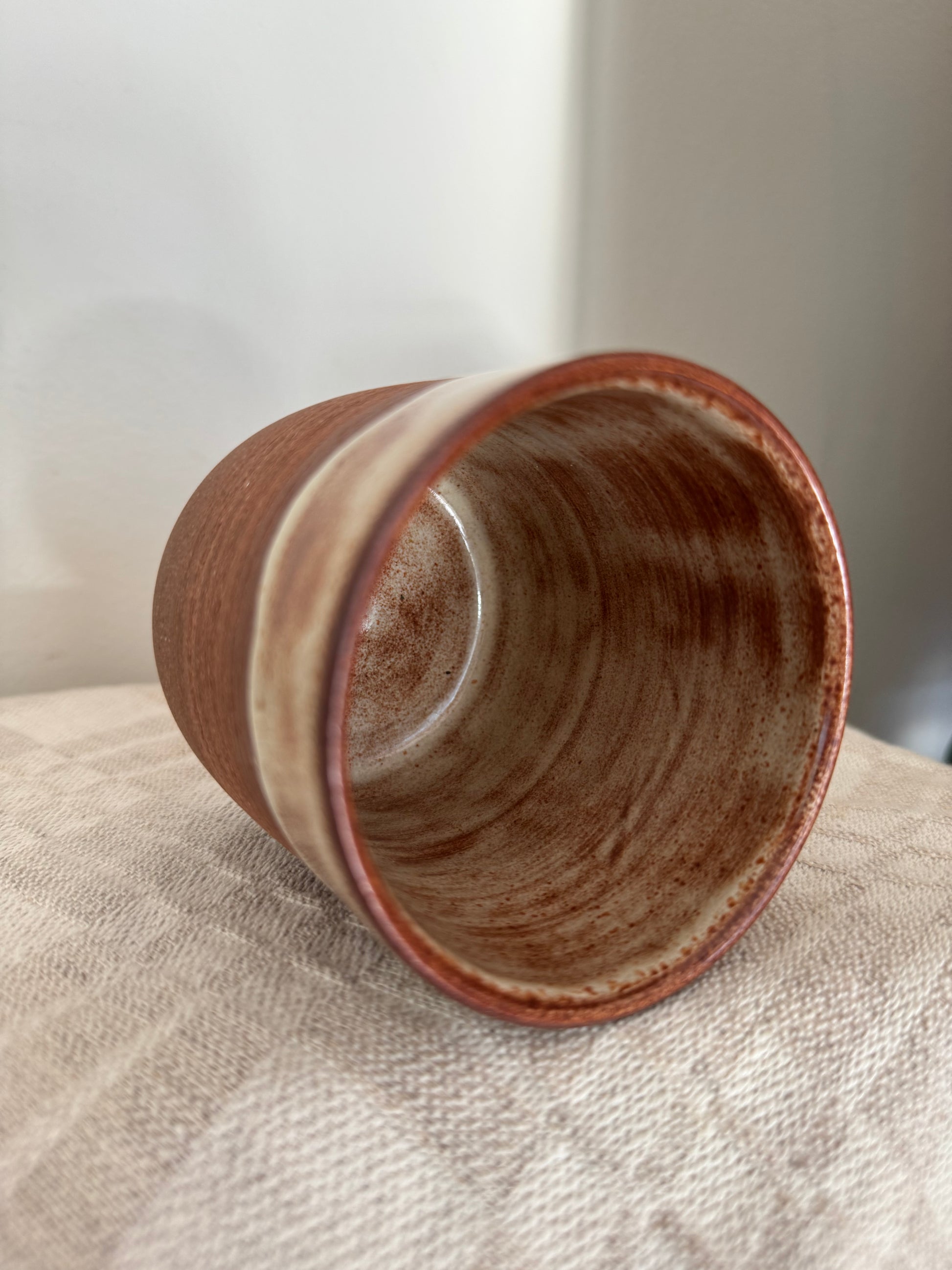 Dark brown stoneware mug with creamy rust coloured glaze.